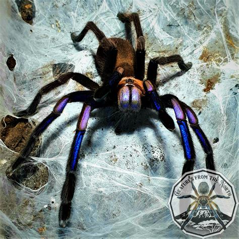 Dospelé jedince majú tmavé telo s intenzívne modrými nohami, ktoré pri správnom osvetlení vyzerajú takmer neónovo. Mláďatá sú spočiatku menej farebné, ale modré sfarbenie sa vyvíja s pribúdajúcimi zvlekmi.